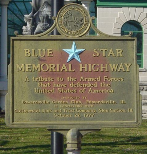 The Blue Star Memorial Highways are a tribute to the armed forces that have defended the United States of America. The National Garden Clubs, Inc., is the parent organization for Blue Star Memorial Highways.